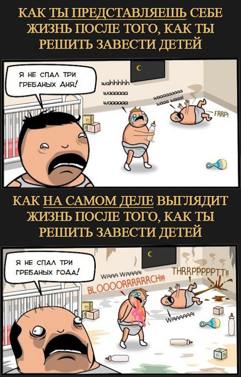 И вы их кормите, поите, воспитываете, убираете говно, одеваете в три комплекта одежды, дарите на дни рождения портфель, азбуку и джинсы, пытаетесь выучить обезьяну в экономиста, что бы в старости оно вас кормило, НО … Чаще всего потом эти человечки, в 14-15 лет, кричат: «ТЫ МИНЯ НИПАНИМАИШЬ МАМА Я ИГО ЛЮБЛЮ И ПОЕДУ ЗА НИМ НА ЭТАП!!» или «Я УЕБЫВАЮ ОТ ВАС, ПРОДАВАЙТЕ СВАЮ ДВУШКУ, Я БУДУ ДИЗАЙНЕРОМ-ДАУНШИФТИРОМ НА ГОА»